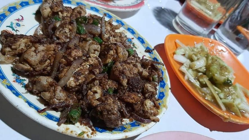 প্রায় ৫২ বছর ধরে একই জায়গায় নুরুল হোসেন ভ্যানের চুলায় ভেজে যাচ্ছেন গরুর চাপ আর মুরগির চাপ। এর পাশাপাশি তার কাছে মিলবে ডিম-আলুর চপ, বেগুনি, পেঁয়াজু, আলুর চপ আর টিকিয়া। নুরুল হোসেনের চাপগুলো ডুবো তেলে ভাজা হয় খানিকটা ময়দা মাখিয়ে। তাই ওপরে একটু মুচমুচে ভাব আসলেও ভেতরে তুলতুলে নরম স্বাদ। চাপ পরিবেশন করা হয় সালাদের সঙ্গে। তবে কেউ যদি লুচি বা পরোটা খেতে চান তবে পাশের হোটেল থেকে আনিয়ে দেওয়া হয়।
