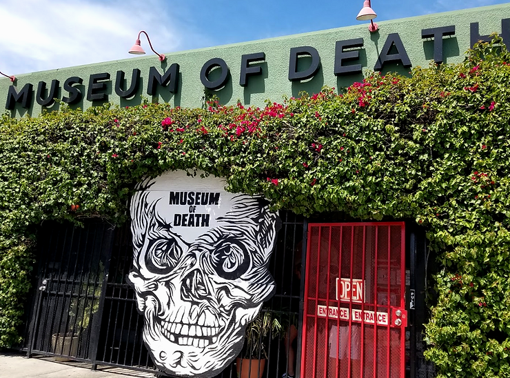 Enter the unsettling realm of the “Museum of Death,” featuring body bags, coffins, a skull collection, and a chilling Theatre of Death.
